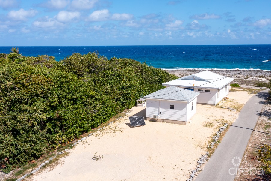 This beautiful beach home is located on the very end of the North East side of Cayman Brac. Offering peace and tranquility with the ocean as your front view and the stunning Bluff in your back yard. This property rises approximately 11ft above sea level. The main house offers two bedrooms and one bathroom with a very spacious open plan living room and kitchen, central air conditioner and is 1,208 sq ft. Beautifully furnished with views of your private pool, sundeck and ocean. The studio apartment is next to the garage and offers 351 sq ft of 1 bedroom and 1 bathroom with mini split air conditioner. This home has much to offer whether you want a private home or vacation rental property. Property also has 2 cisterns totaling approximate 7000 gallons that can be used for irrigation.