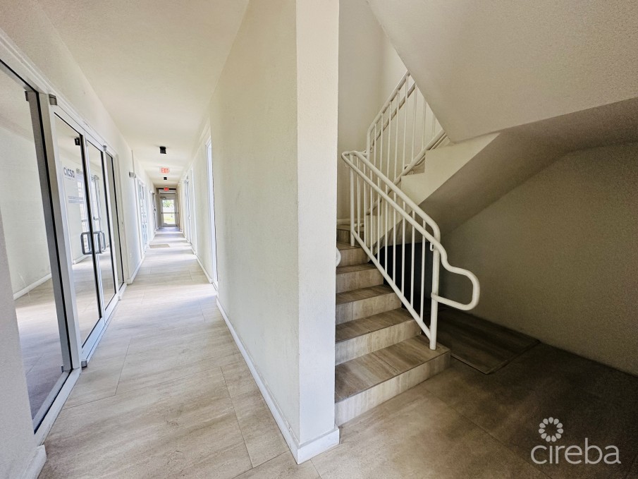 This is a fantastic investment opportunity to own an 800sqft office space with existing rental clients. Optimize your advertising with this prominent George Town location conveniently located at the four way stop by the new pickle ball facility and cricket ground, and maximize the constant visitors passing by. Enjoy owning this fresh and modern unit with solar panels throughout and state of the art IT solutions. A turn key unit with 800 square feet of floor space and drop ceilings with a private bathroom and plentiful natural light, complete with hurricane resistant windows and doors and a serviced elevator and security system.