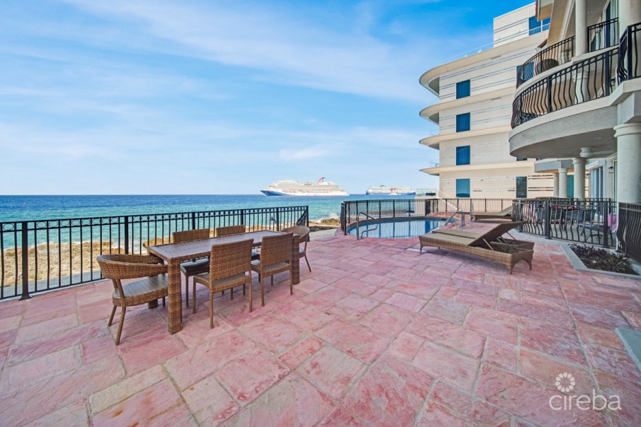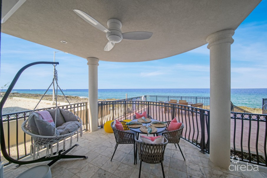Recently renovated, this unit showcases a Caribbean Cottage Chic interior, featuring high-end finishes, brand-new stainless steel appliances, and a fully furnished layout, delivering a turnkey living experience. The open floor plan flows effortlessly between the main living areas and the private corner patio is perfect for outdoor dining, lounging, and enjoying panoramic seaside views. The patio offers direct access to the oceanfront sun lounge area, complete with a seaside dipping pool, soak tub, and sea-ladder access to crystal-clear Caribbean waters, ideal for daily swims, world-class snorkeling, and scuba.