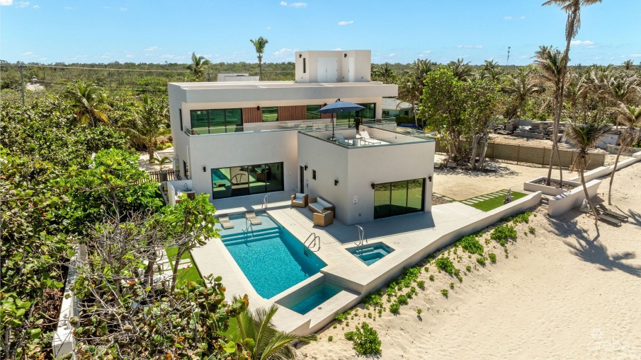 Welcome to Halcyon Point , an extraordinary 5-bedroom, 5.5-bathroom beachfront estate, meticulously designed for luxury, comfort, and resilience. Situated on a sprawling 1-acre lot with 200 ft x 40 ft of pristine sandy beach, this fully furnished modern home offers breathtaking ocean views and seamless indoor-outdoor living.