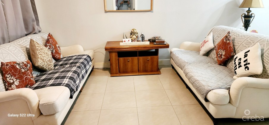 Introducing this exquisite, fully furnished 2 bedroom, 2 bathroom condo, located in a highly sought-after community. This unit offers a perfect blend of comfort and convenience. Step inside and be greeted by tastefully decorated living space. The open concept design seamlessly connects the living, dining, and kitchen areas, creating a spacious and inviting atmosphere. The two bedrooms provide ample space for relaxation and privacy, with each room featuring its own bathroom for added convenience. This condo complex offers an array of amenities that cater to your active lifestyle. Take advantage of the on-site tennis court, perfect for friendly matches or honing your skills. Cool off on hot summer days in one of the pools, or maintain your fitness routine in the well-equipped gym. The grounds of this community are meticulously maintained, showcasing superb landscaping and creating a serene and picturesque environment. Enjoy leisurely walks or find a peaceful spot to unwind and soak in the beauty of your surroundings. Conveniently located approximately 5 minutes from Harbour Walk, Grand Harbour Shopping Center and Hurley's Supermarket, you'll have easy access to a variety of shopping and dining options. The vibrant city of George Town is just a short 10-minute drive away, offering a bustling atmosphere and a range of amenities. Don't miss the opportunity to own this exceptional fully furnished condo with its fantastic amenities and prime location. Contact us today to schedule a viewing and make this your new home in paradise.