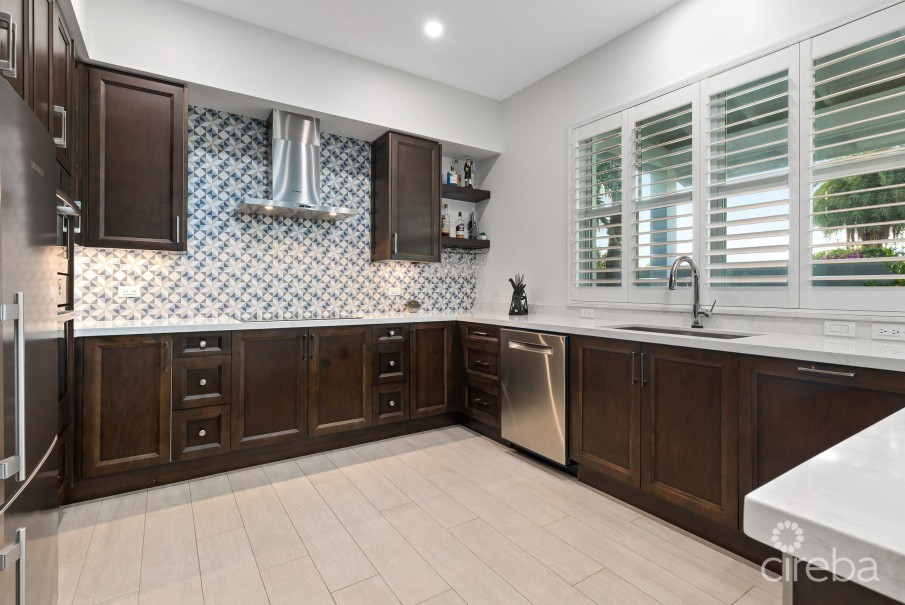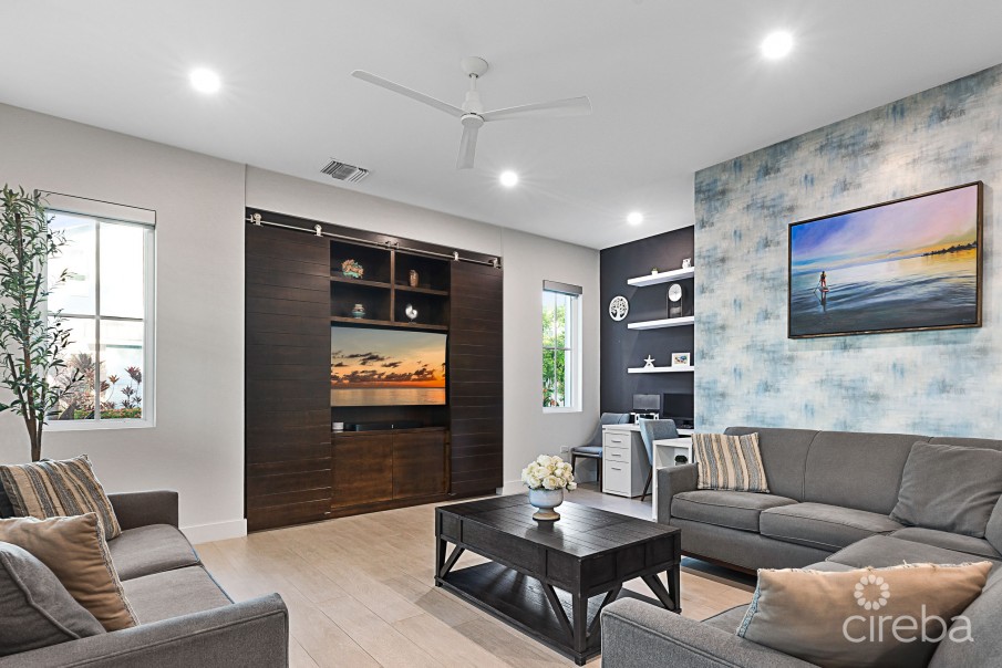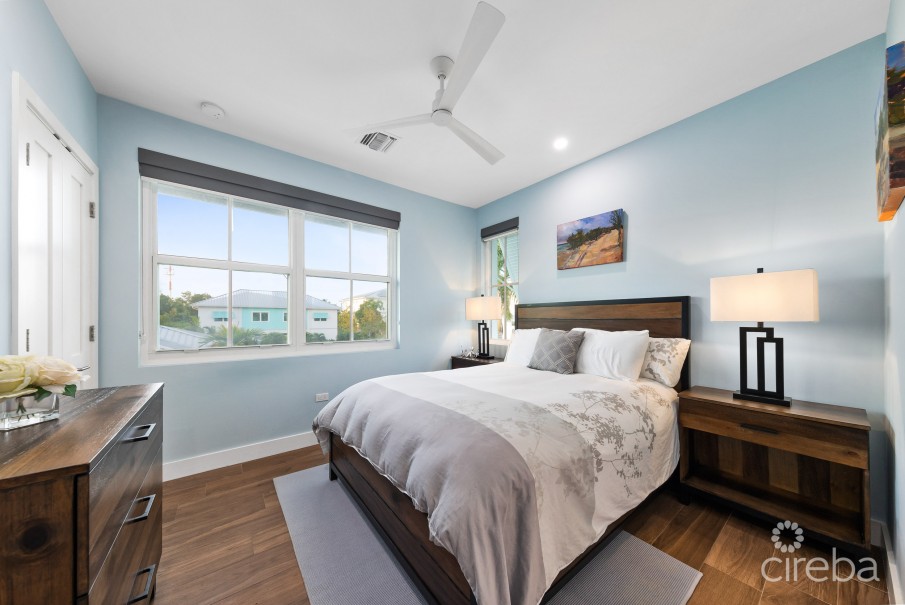 As a resident of the gated community of Periwinkle, you'll enjoy exclusive access to a spacious clubhouse featuring a large pool, hot tub, communal BBQ area, and beautifully landscaped gardens. The meticulously maintained grounds also include a playground and dock space which is available at an additional cost. Situated in the vibrant waterfront community of Grand Harbour, this home offers convenient canal access to the North Sound and delightful walkability to nearby shops, grocery stores, and pharmacies, as well as a variety of restaurants at the popular Harbour Walk.