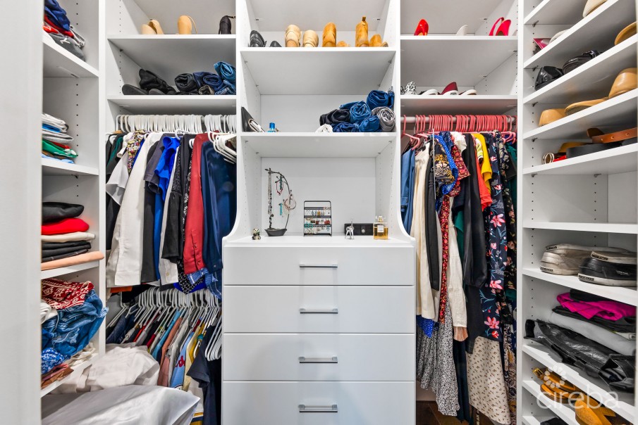 Storage is abundant in this home, with custom closets in both bedrooms, the primary bathroom, and the cleaning closet, ensuring everything has its place. High-end window treatments, including plantation shutters on large downstairs windows and dual roller shades in the bedrooms, provide both light filtering and blackout options to suit your needs.