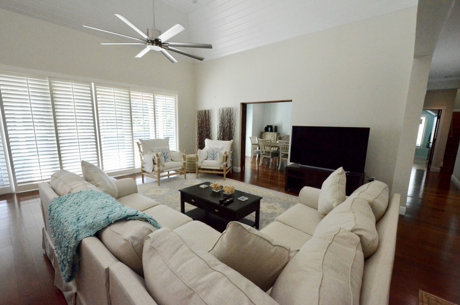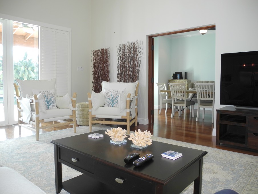 Stunning newly renovated modern Caribbean Style family home located in the prestigious neighborhood of Grand Harbour. The newly remodeled kitchen is open and spacious which is perfect for a chef or entertaining. This 3833 Sq. Ft. home has 4 bedrooms, 3 bathrooms, bonus art room, pool & Jacuzzi, 40' Trek board dock, and 170' water frontage. Solidly constructed, Brazilian Cherry wood floors, impact doors and windows, and a unique floor plan.