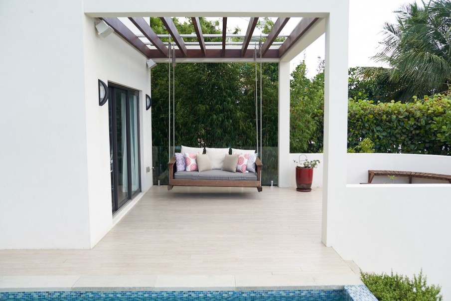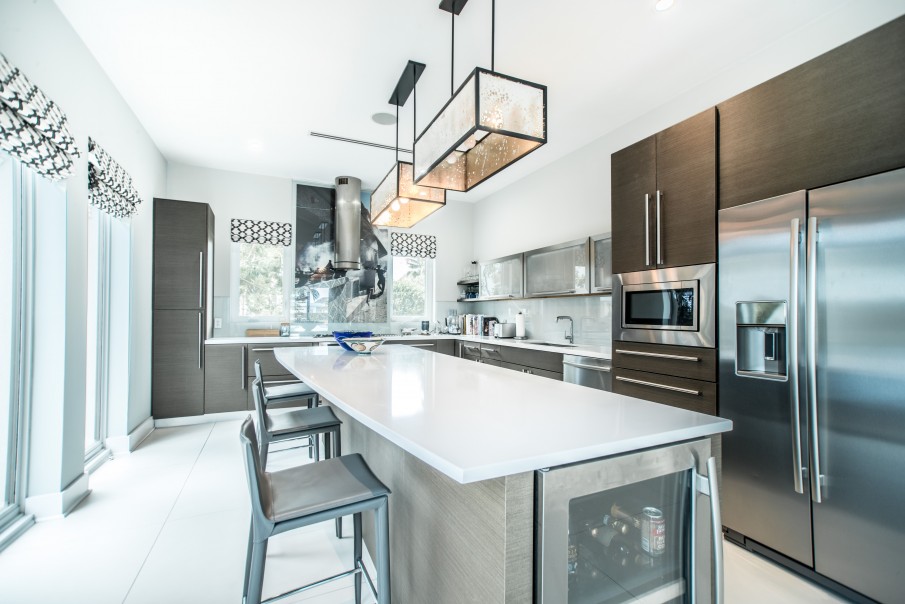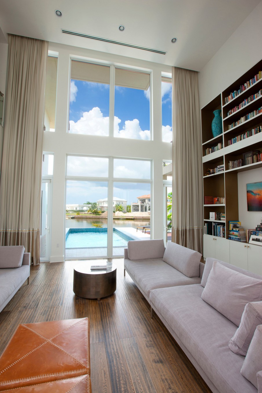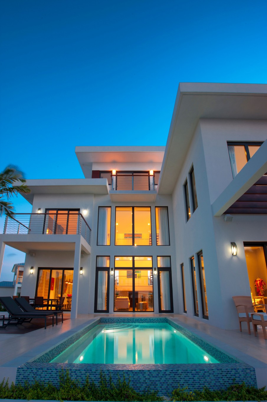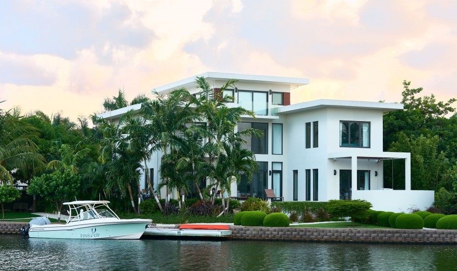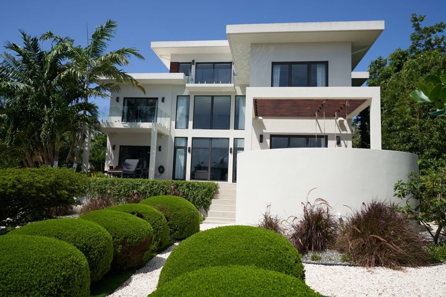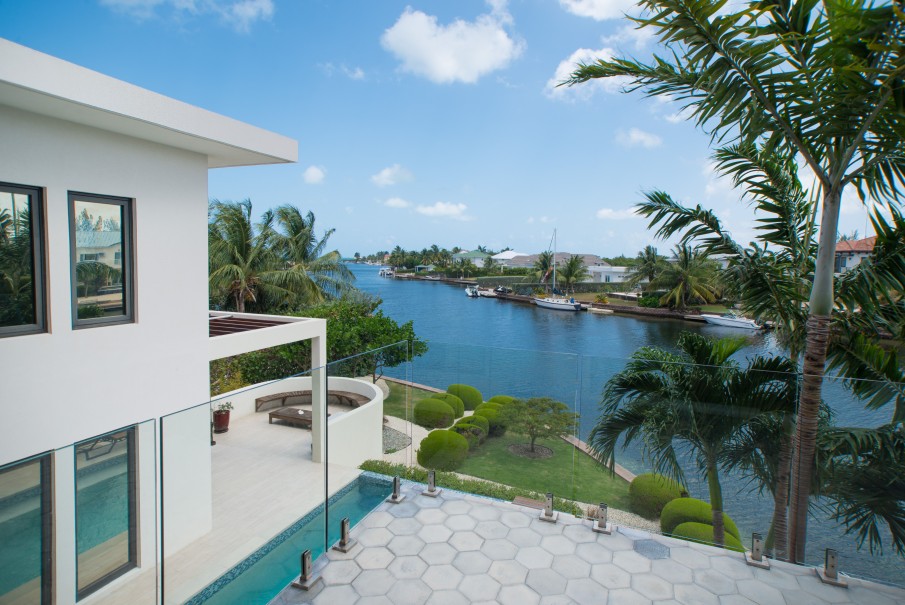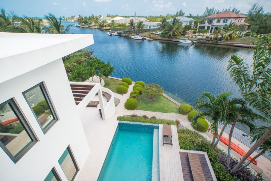 This modern unique luxurious home designed by award winning architect John Doak and is nestled in the community of Grand Harbour. This beautiful home features an abundance of natural light throughout, very high ceilings, extensive open water views from the 176 ft of canal frontage, 4 spacious bedrooms with 3.5 bathrooms encompassing 5,396 square feet. There is a true home theatre room that is sound insulated. Perfect for outdoor entertaining with a 40 ft. dock, saltwater pool with heater, and several separate deck entertaining areas.