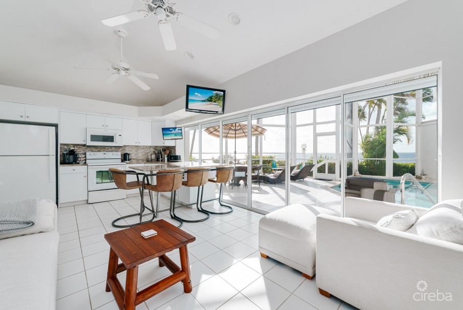 Tucked along the quiet, crystalline coastline of Cayman Kai, this impeccably decorated 2-bed, 2-bath beachfront villa is the perfect island getaway. The signature architectural design of The Pools opens the entire living area onto your own fully screened, private pool—a seamless blend of indoor comfort and outdoor living found nowhere else in Cayman. Every room is oriented toward the sea, and both bedrooms enjoy gorgeous, unobstructed ocean views. The complex is boutique and serene, with just 12 privately owned villas. It’s exceptionally well managed and cherished for its privacy, tranquility, and true Cayman Kai charm. Owners also benefit from a private dock, ideal for keeping a boat close by or heading out for effortless North Sound adventures. Only steps from the Caribbean Sea, the villa offers snorkeling, sunbathing, and peaceful mornings spent overlooking the water. In the evenings, stroll to Kaibo for dinner under the stars or wander over to Rum Point for their world-famous cocktails and laid-back beach atmosphere. Beyond being a stunning vacation home, this villa is also a top-performing short-term rental with excellent income history and consistently strong demand. Homes in this development are highly sought after, rarely become available, and this is the first unit to hit the market in years.