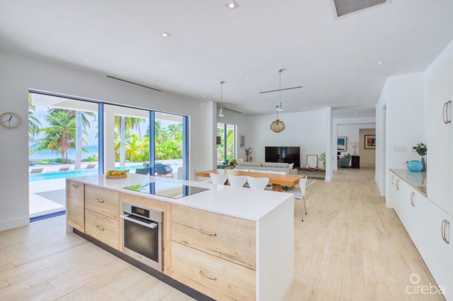 Kai Rose, an oceanfront sanctuary nestled on almost one acre of beautiful ocean front land with 210 feet of Caribbean sea frontage, embodies the pinnacle of luxury living. Expansive windows frame mesmerizing views of azure waters meeting pristine sands, creating a paradise found. The ultra-modern interior, seamlessly blending open-plan living and kitchen areas with floor-to-ceiling glass, provides an immersive experience of the endless ocean views. Awaken in each bedroom to the gentle caress of turquoise waves, embracing complete serenity and privacy. Impeccably designed and fully renovated, this property transcends the ordinary. More than just a home, it's a unique masterpiece in one of the Cayman Islands' most desirable addresses. Here, you're not just choosing a dwelling, but a coveted lifestyle. Steps from the Kaibo Yacht Club and Rum Point Club, you'll be immersed in a vibrant community. Beyond its allure as a perfect family retreat, Kai Rose presents an exceptional investment opportunity, reflecting the area's progressive spirit. This residence is more than a structure; it's a living testament to tranquility and an embodiment of the island's vibrant energy. Step into Kai Rose, where each moment is a chance to seize the day. With unparalleled views and a strategic location, this oceanfront estate invites you to experience life beyond the ordinary.