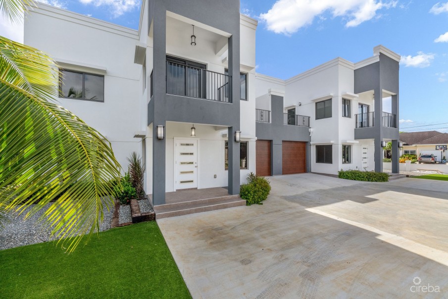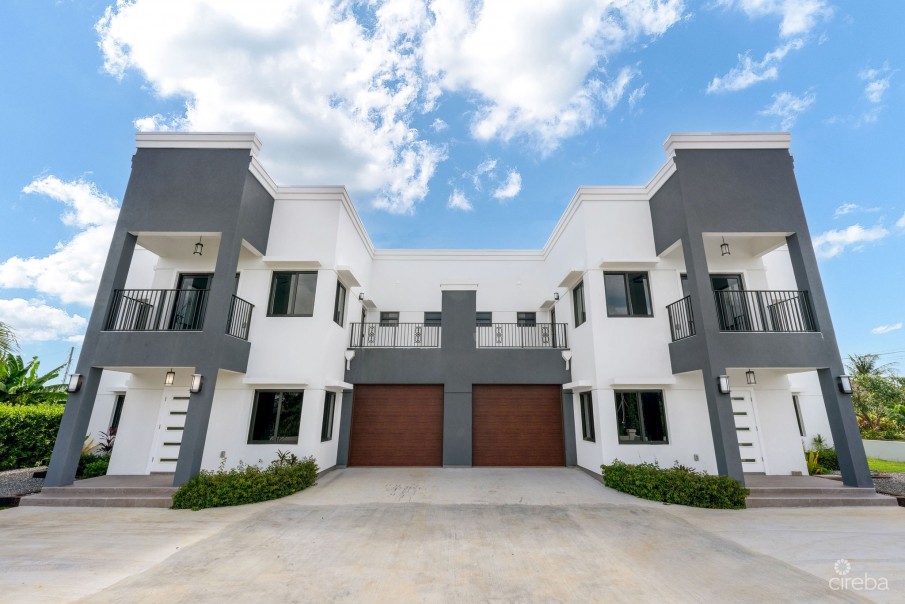 The subject property is one half of this exquisite two-story duplex which is located within the Savannah registered district of Grand Cayman approximately seven miles east of George Town, the capital and business center of the Cayman Islands. This unit features a covered front entry porch, kitchen with large island, spacious living and dining room area, family room, laundry room, powder room, integral garage, under stair storage and a covered rear patio. The second floor features a landing, four bedrooms, four en-suite bathrooms, balconies to two bedrooms and storage closets (walk-in to master bedroom) Excellent value.