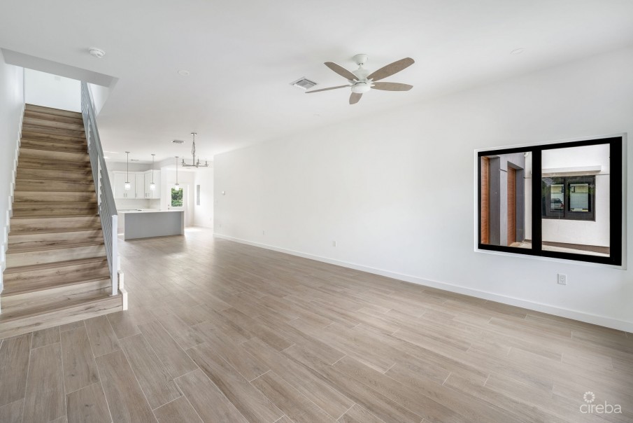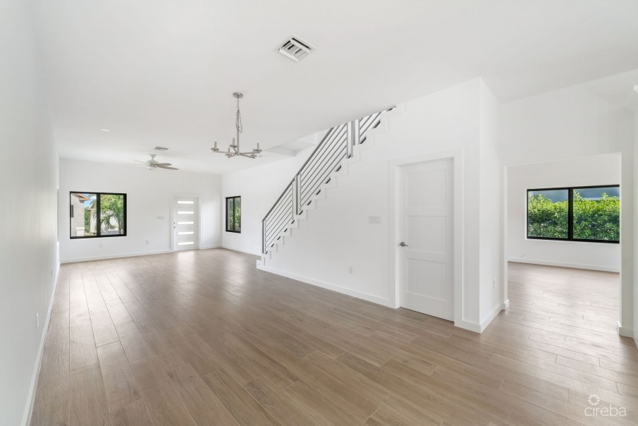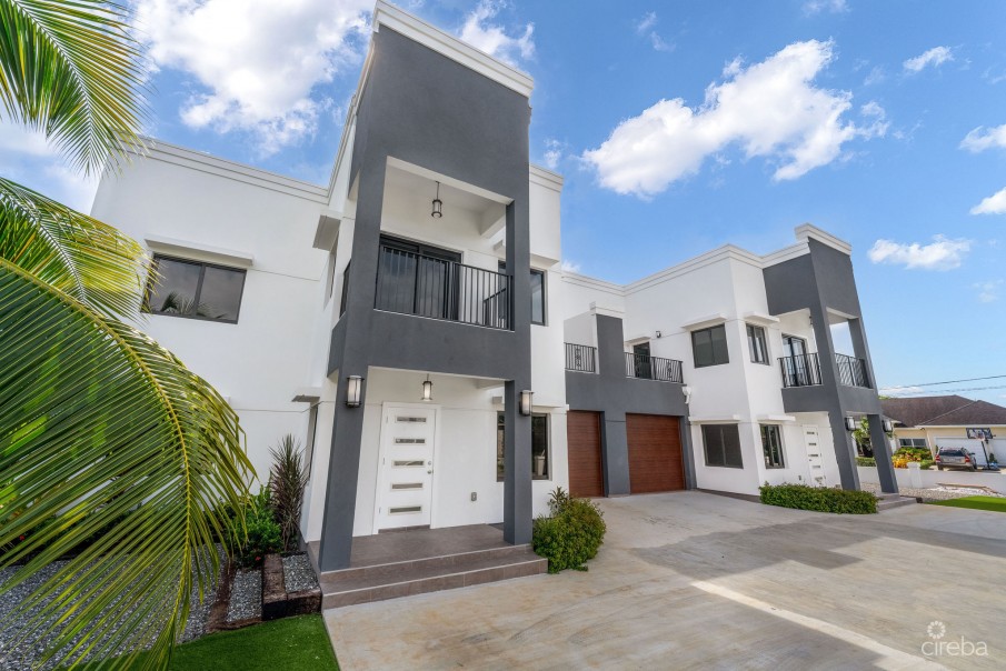 The subject property is one half of this exquisite two-story duplex which is located within the Savannah registered district of Grand Cayman approximately seven miles east of George Town, the capital and business center of the Cayman Islands. This unit features a covered front entry porch, kitchen with large island, spacious living and dining room area, family room, laundry room, powder room, integral garage, under stair storage and a covered rear patio. The second floor features a landing, four bedrooms, four en-suite bathrooms, balconies to two bedrooms and storage closets (walk-in to master bedroom) Excellent value.