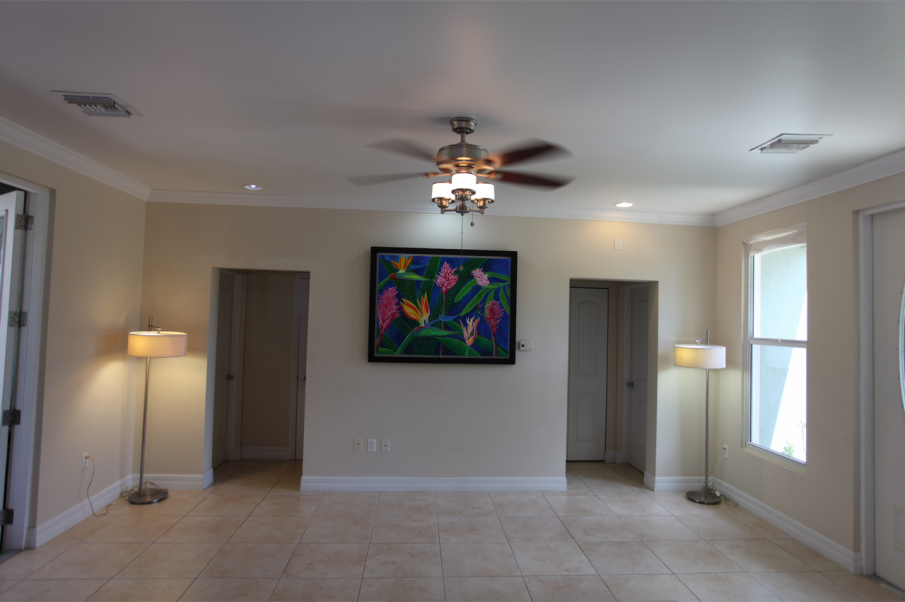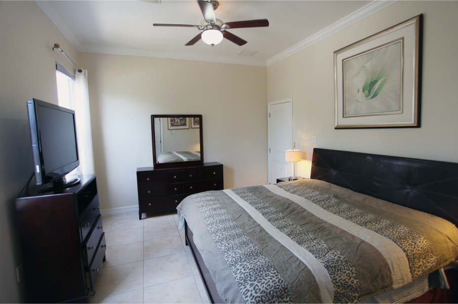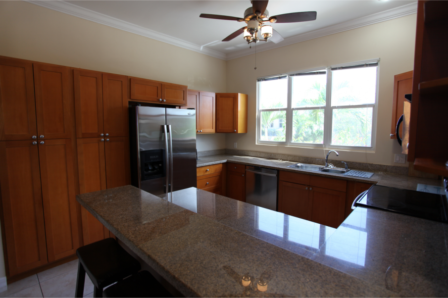 Modern 3 bedroom family home with en-suite bathrooms plus half bath, tiled throughout, maple cabinets, granite counters, zoned a/c, high ceilings, large master bath with walk in closet, lovely screened patio.