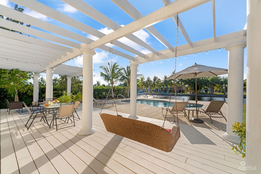 This renovated and upgraded canal-front residence is breathtaking and turn-key ready! Located in prestigious Sunrise Landing, 443 Water Street offers a large parcel of land, fruit trees, expansive backyard with a massive patio and pool that leads to a boater's dream dock. Enter the foyer with sky-high, vaulted ceiling and grand staircase, the main living is just spectacular. Filled with natural light the soft colours you can feel the stress melt away. Magazine-ready great-room style formal living/dining flow through to the fabulous family kitchen and breakfast bar. Enjoy movies or game nights in the cozy family room or work from home in the den/office. A full laundry room and two-car garage round out the ground floor. Then, venture up to the large master suite with a walk-in closet and fully renovated master bath on the second floor which is shared with two guest rooms, and an additional full bath. Not to be forgotten, with its private door off the patio, there is a separate guest suite that can be used for guests, helpers, or an income earner. Days are enjoyed sunning and swimming in the pool or swinging on the porch swing. Evenings are spent stargazing as this property is so private and quiet with absolutely no light pollution. Seconds away from our North Sound playground, world-famous stingrays, snorkeling, diving, and fishing await and make this home an all-around perfect family residence.