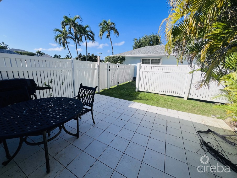 PALM SPRINGS This well-maintained residence features new wood-look tiled flooring throughout, a newly renovated kitchen, and brand-new appliances. The property has been consistently rented and offers an excellent end-unit location with a private side-door exit leading to the patio and garden. Additional highlights include attic storage and hurricane shutters on all windows. Ideal as a Cayman holiday retreat, a full-time residence, or a rental in-vestment. The complex offers excellent amenities, including a swimming pool, gym, and tennis court. The strata is pet- and family-friendly and is conveniently located on South Sound Road. Enjoy easy access to South Sound Public Beach (Surfers Beach), just a 4-minute walk away, or a 10-minute walk to Smith’s Cove.