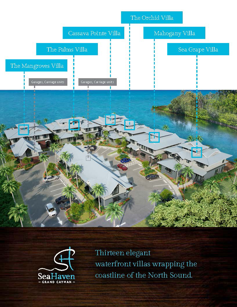 Grand Cayman's newest private gated enclave of thirteen elegant waterfront Villas positioned directly upon a pristine navigable waterway and wrapping the coastline of the tranquil North Sound. Special features consist of private garages, private boat dockage, generously sized detached ala carte carriage guest houses and spacious third story rooftop terraces with panoramic water views. Pet and family friendly on a secluded picturesque dead end with no thru-traffic for maximum privacy and safety for walking pets and riding bikes and surrounded by new development for maximum future capital appreciation. Sea Grape Villa 2 includes a one car garage as well as a 275 sq foot rooftop terrace for a total of almost 2700 square feet of living space....