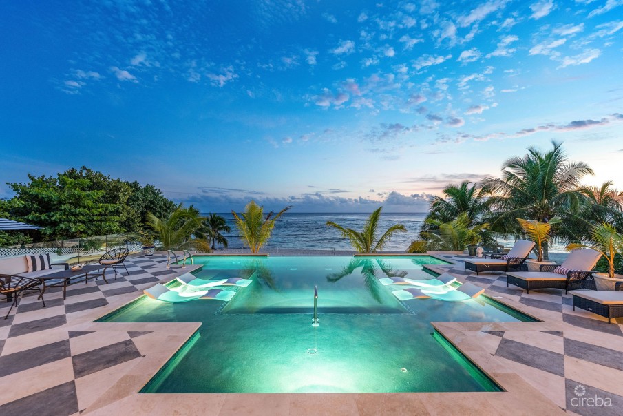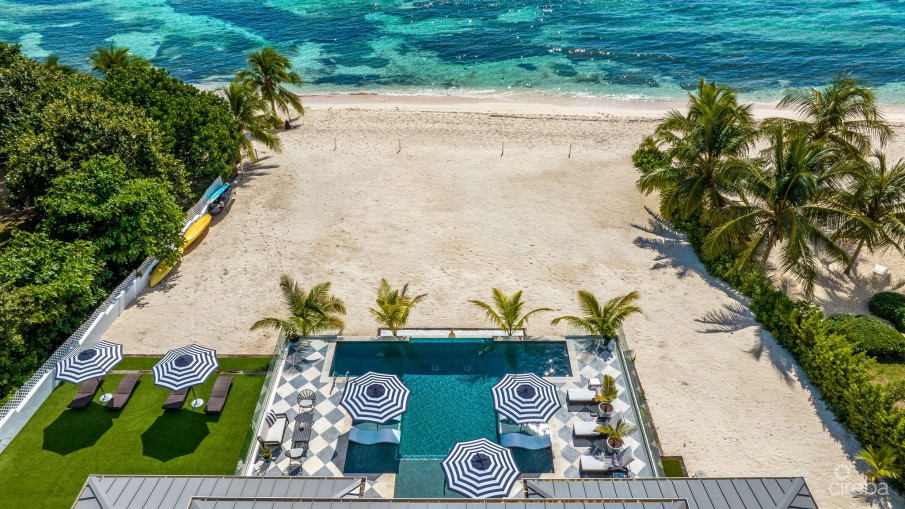 Spotts Cottage boasts 10,000 square feet of its own private white sand beach with reef protected waters. And thanks to the home's north-facing orientation, you can bask in breathtaking sunsets from the comfort of your back porch, shielded from the glare of the sun.