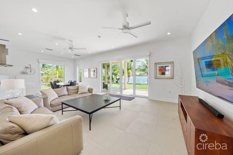 Welcome to the New Patrick’s Island… Now a Gated Community. Live the life you love... Gorgeous views across the Canal Basin from the 1st Floor Covered Porch and the 2nd Floor Covered Balcony. So easy to RELAX! Enjoy the 30 ft Boat Dock with Water and Electric Service. Just a short voyage to the North Sound for Fishing, Diving, Stingray City and Restaurants. Convenient Location close to Shopping and Restaurants at Grand Harbour, as well as in the Countryside! This unique Floor Plan suits many Lifestyles… The Main House features 3 Bedrooms, 3 Bathrooms, a kitchen, Dining Room, Family Room, Laundry Room, Covered Porch, Covered Balcony, and a large storage room, spanning 2,934 sq ft. The Guest House features 1 Bedroom, 1 Bathroom, plus a Kitchen, Dining Area, Living Room, Pantry, and Coved Porch, and measures 818 sq ft. The spacious 3-car garage with an additional Storage Room is 938 sq ft. Special Features include: Newer Modern Design - Light and Bright! White Shaker Style Cabinets with SS Hardware Walk-In / Walk-Out Glass-Enclosed Showers Cook’s Delight Kitchen with KitchenAid Appliances ICF Construction and the 2nd floor is concrete Spray Foam Insulated Attics 4 Separate A/C Units Standing Seam Metal Roof Security System Hurricane Impact Windows and SG Doors Stack Washer & Dryer with a separate room Laundry Cabinets with Laundry Sink 3 Flat Screen Wall Mount TVs LED Recessed Lights Energy Efficient Ceiling Fans Porcelain Tile Floors 10 ft Ceilings Throughout 8 ft Solid Core Single Panel Doors Huge Primary walk-in Shower with Separate Soaking Tub Kohler Sinks and Toilets Grohe SS Plumbing Fixtures 2 Tankless Hot Water Heaters Decorative Glass Front Entry Door Roller Blinds and Solar Shades Wide Winding Staircase Built-in Bookcases on 2nd floor landing Lots of PGP Tilt-out Windows 3 Automatic Garage Door Openers with Key Pad Entry 3 Exterior Hose Bibs Lawn Sprinkler System with Automatic Timer Extra Large Paver Driveway Travertine Walkways and Porches Composite Deck on Boat Dock Plumbing for 1/2 Bath in Storage Room Plenty of Space and access to the pool - plans available! Agent Owned