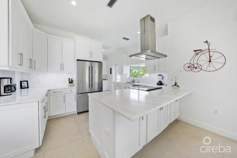Welcome to the New Patrick’s Island… Now a Gated Community. Live the life you love... Gorgeous views across the Canal Basin from the 1st Floor Covered Porch and the 2nd Floor Covered Balcony. So easy to RELAX! Enjoy the 30 ft Boat Dock with Water and Electric Service. Just a short voyage to the North Sound for Fishing, Diving, Stingray City and Restaurants. Convenient Location close to Shopping and Restaurants at Grand Harbour, as well as in the Countryside! This unique Floor Plan suits many Lifestyles… The Main House features 3 Bedrooms, 3 Bathrooms, a kitchen, Dining Room, Family Room, Laundry Room, Covered Porch, Covered Balcony, and a large storage room, spanning 2,934 sq ft. The Guest House features 1 Bedroom, 1 Bathroom, plus a Kitchen, Dining Area, Living Room, Pantry, and Coved Porch, and measures 818 sq ft. The spacious 3-car garage with an additional Storage Room is 938 sq ft. Special Features include: Newer Modern Design - Light and Bright! White Shaker Style Cabinets with SS Hardware Walk-In / Walk-Out Glass-Enclosed Showers Cook’s Delight Kitchen with KitchenAid Appliances ICF Construction and the 2nd floor is concrete Spray Foam Insulated Attics 4 Separate A/C Units Standing Seam Metal Roof Security System Hurricane Impact Windows and SG Doors Stack Washer & Dryer with a separate room Laundry Cabinets with Laundry Sink 3 Flat Screen Wall Mount TVs LED Recessed Lights Energy Efficient Ceiling Fans Porcelain Tile Floors 10 ft Ceilings Throughout 8 ft Solid Core Single Panel Doors Huge Primary walk-in Shower with Separate Soaking Tub Kohler Sinks and Toilets Grohe SS Plumbing Fixtures 2 Tankless Hot Water Heaters Decorative Glass Front Entry Door Roller Blinds and Solar Shades Wide Winding Staircase Built-in Bookcases on 2nd floor landing Lots of PGP Tilt-out Windows 3 Automatic Garage Door Openers with Key Pad Entry 3 Exterior Hose Bibs Lawn Sprinkler System with Automatic Timer Extra Large Paver Driveway Travertine Walkways and Porches Composite Deck on Boat Dock Plumbing for 1/2 Bath in Storage Room Plenty of Space and access to the pool - plans available! Agent Owned