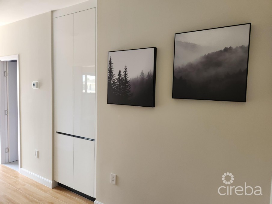 A developer's unit! Live easy, pay little, relax A LOT! This fully equipped and fully furnished condo is brand new, with loads of storage space, thoughtful touches and low-maintenance living. Both bedrooms offer queen sized beds and closet systems that maximize space and functionality. With plenty of parking for owners and guests, you can relax in your condo or lounge by the pool! Oh the pool....WOW....what a great design, complete with a rooftop lounge, gym and entertaining space. The developers went all out: modern design, artificial turf for easy lawn care, hurricane rated construction, energy efficient features, standing seam roof, gated property, cobblestone driveway, solar exterior lights....just an amazing property inside and out. Come see this fabulous condo and you will realize that this is where you need to be! Rented for CI$3200 per month, you can buy and have immediate income. About a 6% ROI.