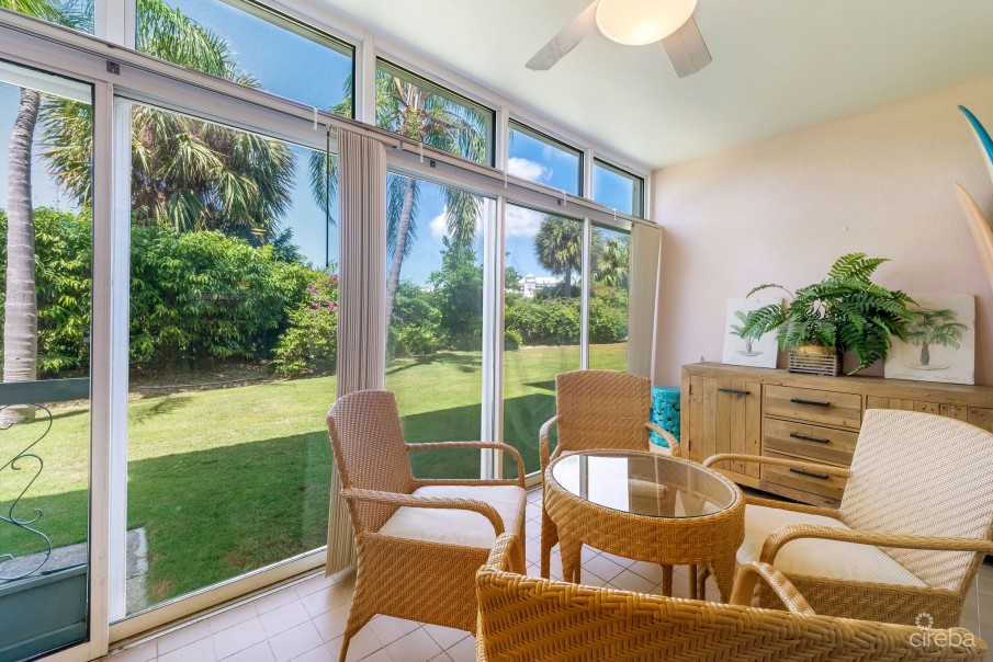 Britannia 213 – 1-Bedroom Garden View Condo Welcome to easy, modern island living in one of Grand Cayman’s most sought-after communities. This one-bedroom condo in Britannia’s Lions Court is in an unbeatable location, just a short walk to Camana Bay, Seven Mile Beach, and an array of dining, shopping, and entertainment options. Set on the peaceful second floor, this bright unit is surrounded by lush tropical landscaping and serene views of the former Britannia Golf Course. The open-plan living area is filled with natural light from floor-to-ceiling windows and opens onto a spacious screened terrace, perfect for relaxing with morning coffee, winding down at night, or entertaining friends year-round. Inside, the contemporary kitchen features elegant cabinetry, modern appliances, and quartz countertops, flowing into the living and dining area. The spacious bedroom offers a calm retreat with garden views, generous storage, and a stylish, newly updated bathroom. Enjoy the best of Britannia living with walking and jogging trails, a canal-side path, and complex pool just steps from your door. With ample dedicated parking, quiet surroundings, and proximity to everything along Seven Mile Beach, Britannia 213 is a truly turnkey property - ideal as a low-maintenance home or a smart investment in one of Cayman’s most desirable neighbourhoods.