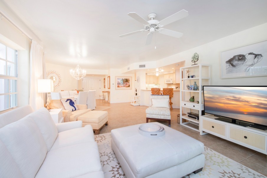 Immaculate corner ground floor Britannia Villa with private dock in Lions court. The Villa is very open, spacious, and private. The large screened wrap around patio is wonderful for entertaining or just relaxing with the view of lush gardens. Villa has been updated and is turn key.
