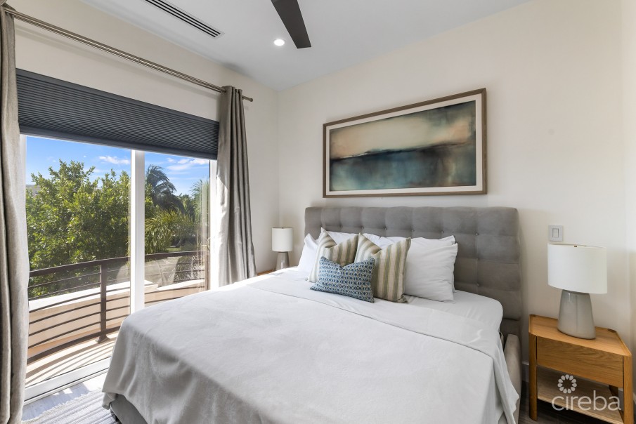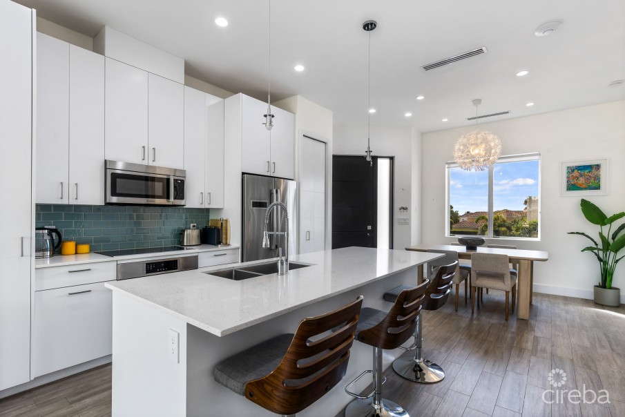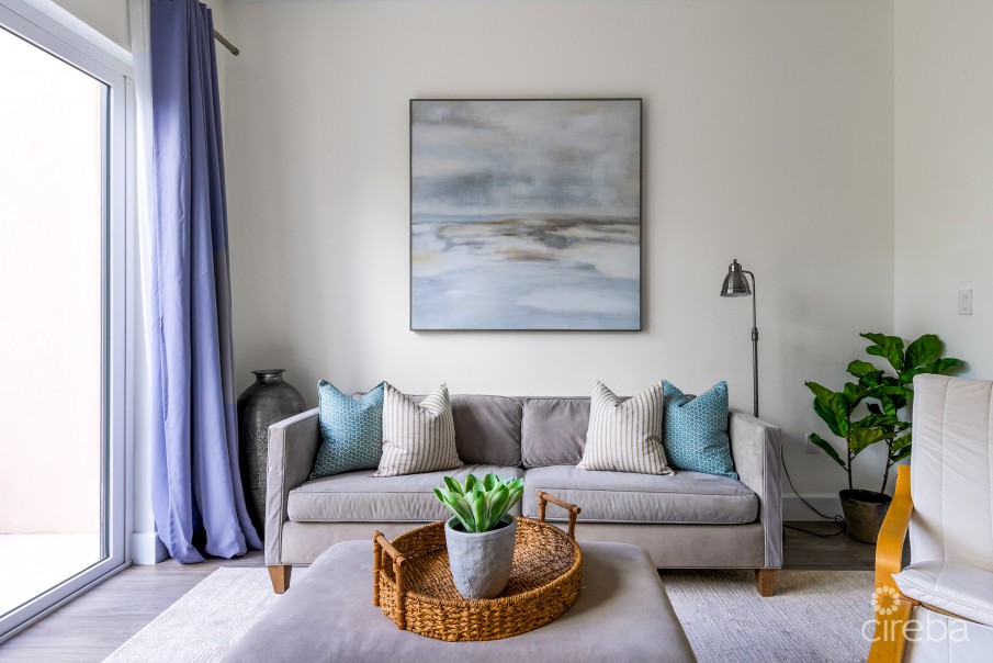 Welcome to this beautifully furnished one-bedroom contemporary condo in Crystal Harbour. This home offers more than 900 sq. ft. of well-planned living space with an open layout and generous storage throughout. The design allows for comfortable everyday living while making good use of the space. A notable benefit for the new owner is the property’s renewable energy systems, meaning there are no CUC electricity bills. The interior includes a modern kitchen with pantry and additional storage closet, a dining area, a spacious living room, a quiet primary bedroom, and a large walk-in wardrobe. Located within the waterfront neighbourhood of Crystal Harbour beside the North Sound Golf Club, the development focuses on energy efficiency and sustainable design. The residence is presented in excellent condition. With only a limited number of one-bedroom homes in this development, the property offers a rare opportunity to own within a quiet residential setting along the Seven Mile Beach Corridor. The building features ICF construction, hurricane-rated impact windows and doors, a full solar power system, and geothermal cooling technology. Residents are close to tennis courts, swimming pools, fitness facilities, boating, and golf. The surrounding golf course paths also provide space for walking, running, and cycling.