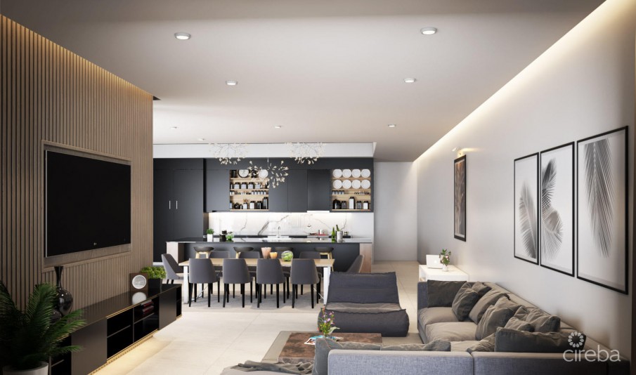 Welcome to the NEW Dolphin Point Club. Grand Cayman’s most exciting new Development. Enjoying a rare oceanfront situation with unrivaled views down the full length of Seven Mile Beach, The Club offers the perfect backdrop for a new type of family-friendly community. Dolphin Point Club has been meticulously crafted using eco-friendly construction methods to reflect the very best of modern tropical architecture. Encompassing 38 open-plan condominiums ranging from luxury 1 bedroom units to sprawling 4 bedroom sky villas. Each home features panoramic, hurricane-rated windows and expansive tempered glass balconies to maximize natural light and take full advantage of the stunning daily views and sunsets. Lifestyle, Luxury living, and Privacy is of paramount importance at Dolphin Point Club. Amenities include Cayman's first high-end rooftop restaurant (offering room service), private gym with infrared sauna, multi-use clubroom, communal roof garden, children's splash pad and a dog park, not to mention the stunning 110 ft infinity pool and a unique private seawater lagoon. Buyers have an option to purchase a single or double car garage. Cayman’s new Elite Address.