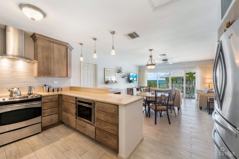 Option 1 Experience the epitome of beachfront living with this fully renovated 2-bedroom, 2-bathroom condo nestled in the heart of 7 Mile Beach. As you step inside, you are greeted by an abundance of natural light streaming through the large ocean-facing windows. Offering a master suite that will leave you breathless, featuring panoramic ocean views that make you feel as though you are floating on the tranquil waters. Wake up to the sound of the Caribbean Sea gently lapping against the shore, all from the comfort of your own bed. The kitchen is equipped with top-of-the-line stainless steel appliances and custom cabinetry that ensures both style and functionality, with ample storage space allows you to keep your kitchen organized and clutter-free. Amenities include a refreshing swimming pool and a tennis court for those seeking an active lifestyle. For the underwater enthusiasts, a shipwreck just steps away from your doorstep presents an extraordinary opportunity for snorkelling adventures in your very own backyard. Every aspect of this beachfront haven has been thoughtfully renovated, showcasing impeccable attention to detail and uncompromising quality. Don't miss the chance to own this exceptional beachfront oasis, where every day feels like a blissful retreat