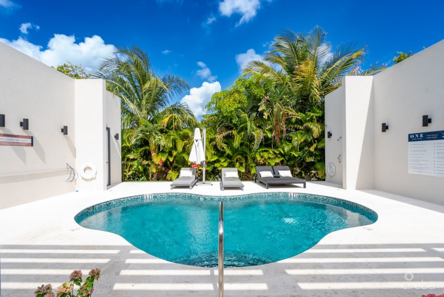 Welcome to unit 535 at ONE Canal Point, a charming top-floor 2 bedroom 1 bathroom condo in a modern, gated community just a 5 minute walk from the world-renowned Seven Mile Beach, Grocery Stores, Camana Bay, and an array of dining options. This 1,013 sq ft residence offers high-end finishes throughout, including sleek BOSCH appliances. Step inside to find a stylish, open-concept living space, designed for comfort and functionality. The unit comes fully furnished, curated by local interior designer Anna Hislop, adding a touch of elegance to every room. Enjoy your morning coffee or unwind after a long day on the private balcony, offering tranquil views. ONE Canal Point boasts an impressive array of amenities: a dog park for your furry friends, a children's playground, a lap pool, an adult-only pool, and an outdoor kitchen and BBQ area for entertaining. Fitness enthusiasts will appreciate the state-of-the-art gym, ensuring you have everything you need for an active lifestyle. Included in the price is a 30-ft dock, perfect for water lovers looking to enjoy the canal. Whether you're seeking a peaceful retreat of a vibrant, walkable lifestyle, this home offers the best of both worlds. Live the live you've always dreamed of at ONE Canal Point!