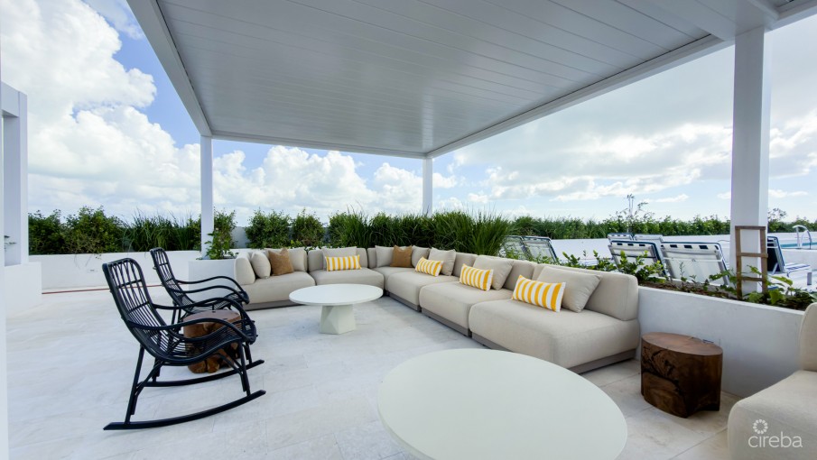 A signature feature of The Grove Too is its expansive rooftop terrace spanning the west building, offering panoramic views of the Caribbean Sea and North Sound. Residents enjoy a resort-style pool and hot tub, sauna and steam rooms, meditation garden, children’s play areas, social spaces, and a rooftop bar, amenities rarely found in boutique developments of this scale.