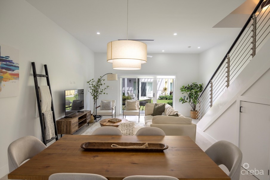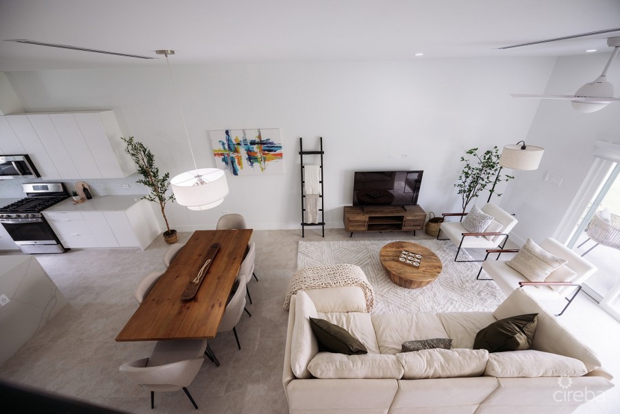 Introducing Pineapple, our largest and most luxurious townhome, spread across three beautifully designed floors. The ground floor features an expansive, fully equipped living and kitchen area that opens up to a private patio, perfect for seamless indoor-outdoor living. On the second floor, you'll find two spacious bedrooms, each with its own ensuite bathroom and walk-in closet, along with a conveniently located laundry room. On the third floor, you will find a large open room that can be converted into a sizable master bedroom or used as an equally impressive family room that opens onto a private grand patio, offering North Sound views and is the perfect space to relax and enjoy the beautiful Cayman weather in style.