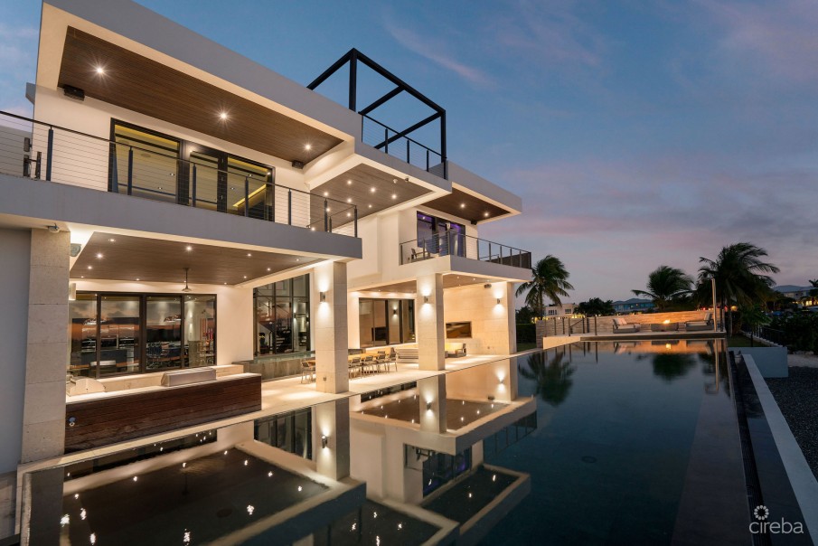 Nestled within the exclusive enclave of Lalique Pointe, Crystal Harbour in the Cayman Islands, this exquisite 7 bed, 6 bath luxury home epitomizes coastal elegance and island living at its finest. Situated on a prime waterfront lot, this stunning residence boasts unparalleled views of the cerulean Caribbean Sea and offers a lifestyle of unparalleled luxury and comfort. Upon entering, you're greeted by a grand foyer adorned with soaring ceilings and opulent finishes, setting the tone for the lavishness that awaits within. The open-concept floor plan seamlessly integrates the living, dining, and kitchen areas, creating a space ideal for both intimate gatherings and grand entertaining. Oversized windows and sliding glass doors flood the interiors with natural light while offering seamless access to the expansive outdoor living spaces, where a private pool, lush landscaping, and alfresco dining areas beckon for relaxation and enjoyment of the island's tropical climate. The gourmet kitchen is a culinary enthusiast's dream, outfitted with state-of-the-art appliances, custom cabinetry, and an oversized island with bar seating. Adjacent to the kitchen, a formal dining area provides an elegant setting for hosting dinner parties and special occasions. The master suite occupies its own wing of the home, offering a serene retreat complete with a spa-like ensuite bath, walk-in closet, and private terrace overlooking the azure waters beyond. Additional guest suites, each appointed with luxurious finishes and private baths, ensure comfort and privacy for family and friends. This exceptional residence also features a range of amenities designed to enhance the luxury lifestyle, including a home theater, fitness center, wine cellar, and private dock, providing direct access to the crystal-clear waters of the Caribbean Sea. With its unparalleled location, impeccable design, and array of upscale amenities, this 7 bed, 6 bath luxury home in Crystal Harbour offers a rare opportunity to experience the epitome of island living in the Cayman Islands.