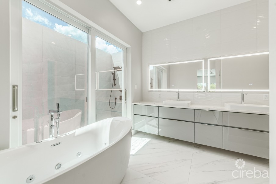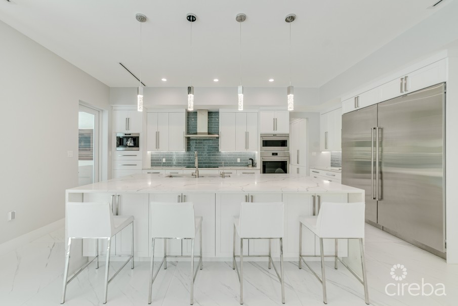 Welcome to one of the most intelligent and beautifully crafted residences in Britannia Estates, a prestigious gated enclave in the heart of the Seven Mile Beach corridor. Designed by award-winning architect Robert Towell, this newly built home embodies contemporary minimalism with an extraordinary level of integrated smart technology—all set within a landscape of serene privacy and effortless elegance.