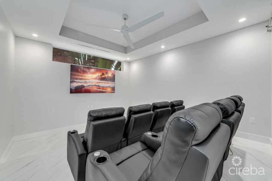 Tailored for modern island living, this home offers a wine cellar, pool room, a dedicated home office, utility room, and a cinema with 8 motorized recliners for those slow evenings. The two-car garage houses Tesla Powerwalls, supported by 36 PV solar panels that provide full energy independence.