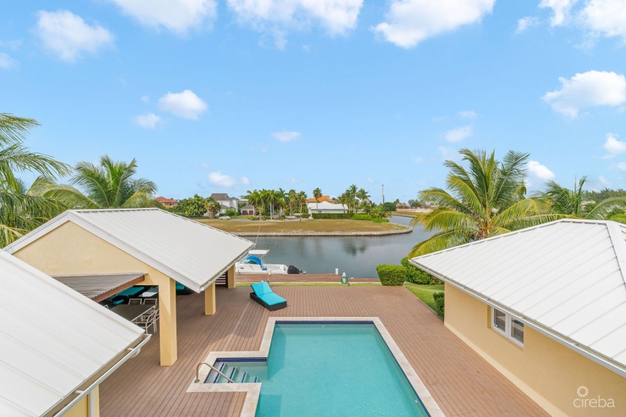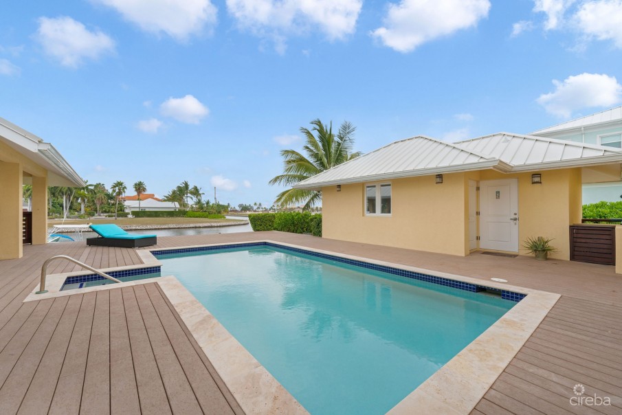 12 Crystal Drive is a stunning canal-front residence offering the perfect blend of Caribbean charm and modern elegance. It features three spacious bedrooms, three and a half bathrooms, a den, and a semi-detached one-bedroom, one-bathroom guest quarters, making it ideal for families or those who love to entertain.