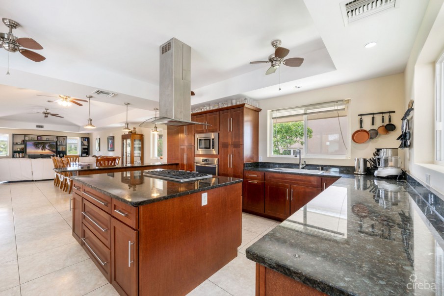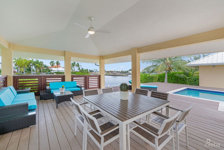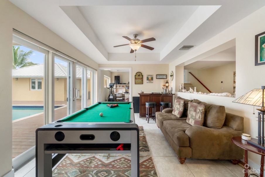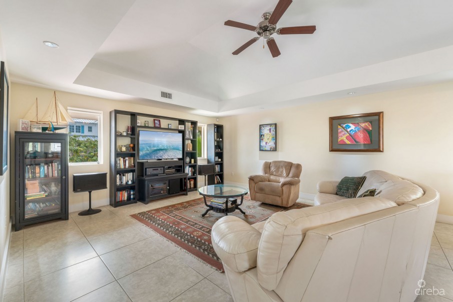 12 Crystal Drive is a stunning canal-front residence offering the perfect blend of Caribbean charm and modern elegance. It features three spacious bedrooms, three and a half bathrooms, a den, and a semi-detached one-bedroom, one-bathroom guest quarters, making it ideal for families or those who love to entertain.