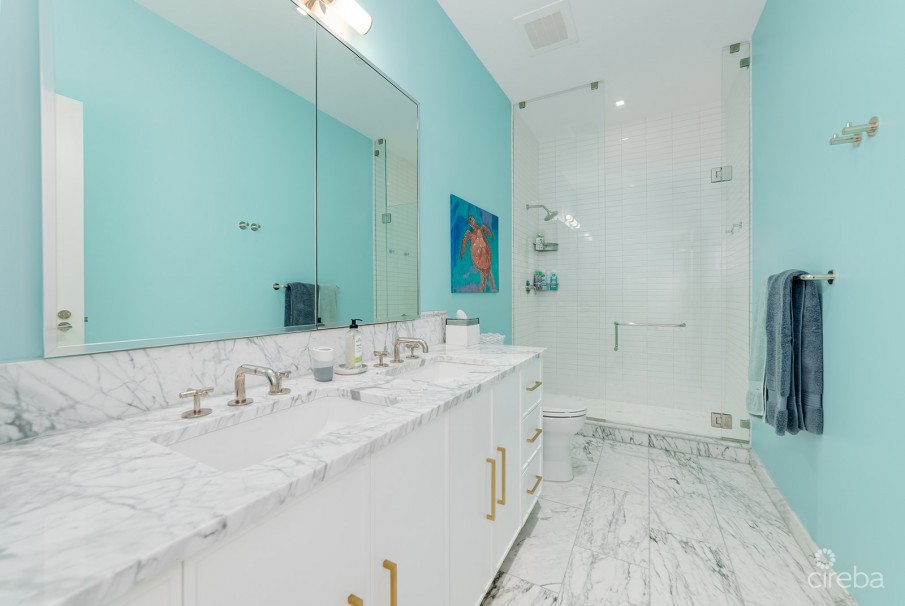 The grand master suite is a private oasis, offering sweeping ocean views, an oversized walk-in closet, and a luxurious en-suite bathroom with a soaking tub and separate shower. Four additional spacious bedrooms, each with custom-designed closets and elegant bathrooms, provide ample space for family and guests. Two of these bedrooms feature en-suite bathrooms and private balconies, allowing you to enjoy the beauty of both the North Sound and the Caribbean Sea.