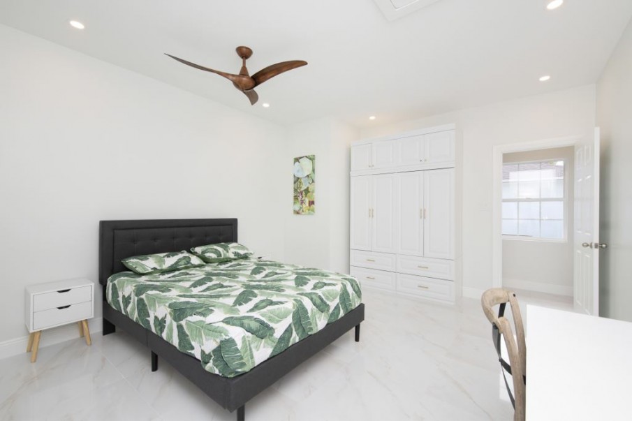 Exceptionally positioned big open plan family home located smack dab in the heart of the coveted Seven Mile Beach corridor in one of the island's most beloved neighborhoods. Walking distance to Camana Bay, Seven Mile Beach and area restaurants as well as a fabulous community park with optional pickle ball access. Includes a separate nanny flat/mother-in-law studio efficiency with it's own private entrance that's perfect for visiting family, home office use or rented out for additional income .. Spacious screened pool area with loads of outdoor entertainment space plus a big lush and well landscaped fenced yard that's utterly perfect for both kids and pets to run and play. Many new enhancements have been invested recently including a charming private courtyard entry and a 5th bedroom conversion that makes this THE one to see if you are seeking space and serenity with the added convenience of the SMB lifestyle.