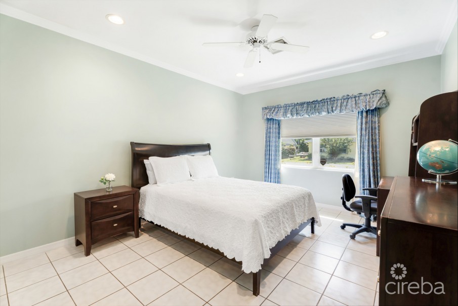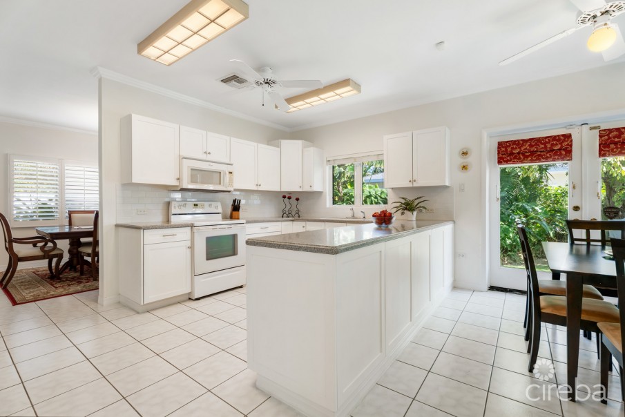 This 3-bedroom, 2.5-bath home offers space where it counts, with natural zones for both relaxing and entertaining. The kitchen is generously sized with excellent prep space, a bright breakfast nook, and a large walk-in pantry. A separate dining room and dedicated bar/entertainment area make hosting easy. A second family room/den and private office add valuable flex spaces for work, kids, or hobbies. A large laundry room and guest powder room support everyday function. The spacious primary suite is designed for comfort, featuring an ensuite with dual vanity, soaking tub, shower, and great closet storage with two closets. Two additional bedrooms share a full bath, with lots of natural light. Ample storage throughout the home as well. Outside, a large covered patio creates the perfect setting for shaded outdoor entertaining, while the fully fenced yard offers privacy and mature surrounding landscaping. Enjoy private access to Snug Harbour Park with a large field, kids playground, tennis, pickleball, and basketball court, all while being minutes from Seven Mile Beach, Camana Bay, schools, and more. Lovingly maintained, this is a rare chance to own in the heart of the action, a location you simply can’t beat. A great opportunity for buyers looking for space, location, and lifestyle all in one.