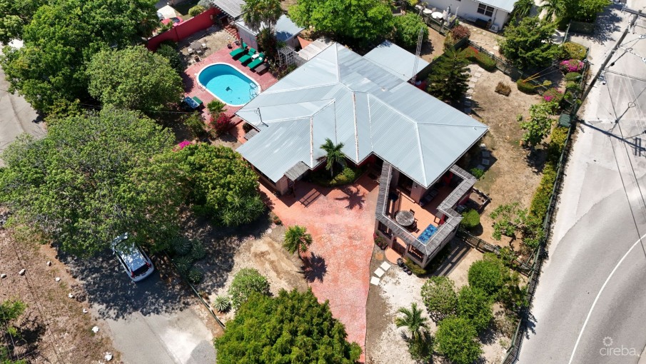 Great investment property in west bay. a fantastic opportunity! The combination of a duplex with a pool, spacious apartments, and Mediterranean style gives it a lot of potential, whether as an investment (easily rented) property or a family home. Comprising of a large one bedroom with veranda and private garden and the other 2 bedroom 2 bathroom and private garden, there is a separate office on premise, total sq is 4220 on 0.40 acres of lush garden. The proximity to the beach, supermarkets, Camana Bay, and the airport adds extra appeal, especially for tourists or long-term renters. Previously licensed as tourism accommodation this opens up more possibilities. Owner motivated.